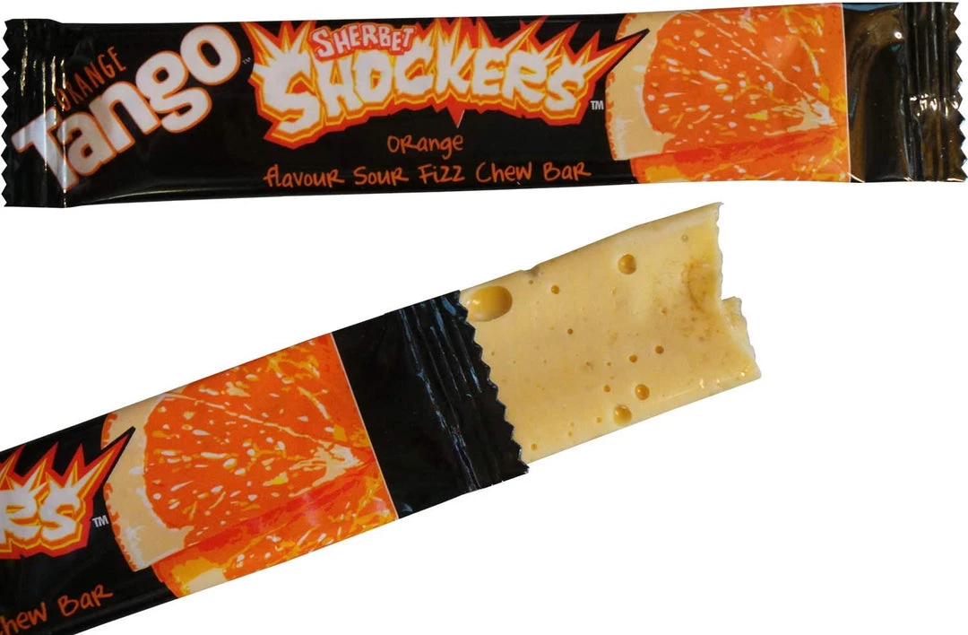 Tango Sherbet Shockers are a sour orange fizz chew bar with sherbet shockers hidden inside. These chew bars pack a punch with their sour flavour!