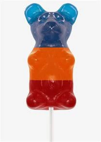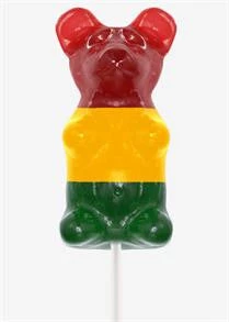 About 90 times the size of an average gummy bear. It packs a wallop of monstrous taste! Available with or without a stick