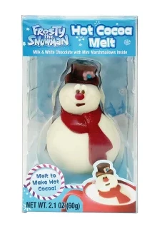 Frosty the Snowman is made out of creamy milk and white chocolate and filled with mini marshmallows they don’t mind that he melts. That is if it’s in a mug of warm milk for a comforting hot beverage.