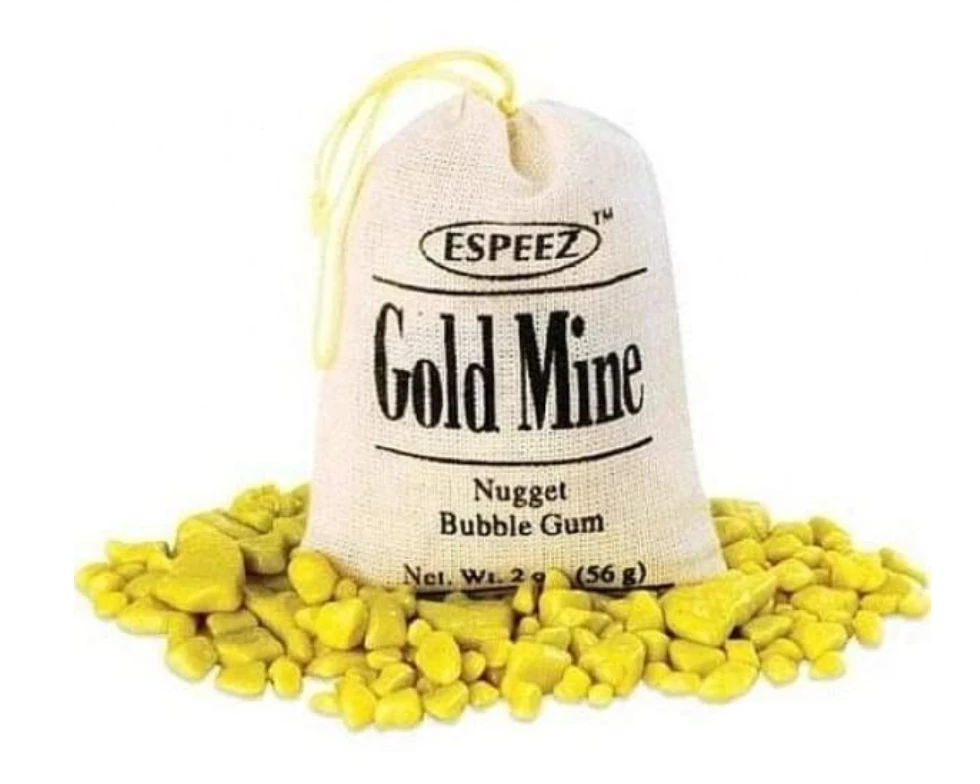 Gold Mine Gum is the nostalgic candy from your past—the #1 selling golden nugget gum in a re-close-able burlap bag! The juicy, flavourful, fruit flavored gum will bring back the days of your youth—and introduce your kids to the best gum the past or present has to offer. Let Gold Mine Gum bring a smile to your day.