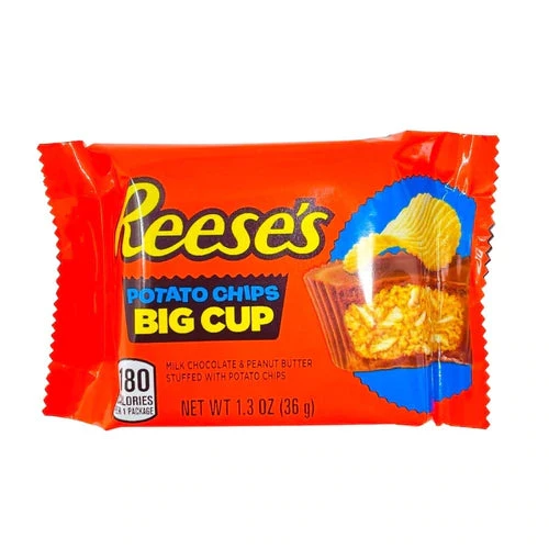 The long-awaited arrival of a sweet and salty chocolate delicacy is finally here! Introducing Reese’s Big Cup with Potato Chips!!! This treat is still made with the iconic creamy peanut butter enrobed in smooth milk chocolate. The only twist is that the peanut butter now offers a delicious savoury crunch from the addition of potato chips