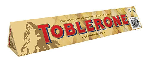 Toblerone is a pleasurable chocolate experience featuring smooth Swiss milk chocolate, crunchy almond nougats, and sweet honey.