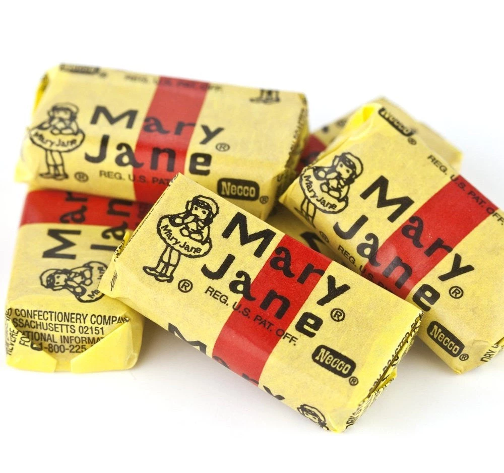 Behind this nostalgic wrapper you will find a sweet little peanut butter chew. A favourite among penny candy stores everywhere.