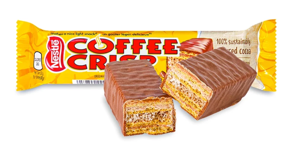Nestle Coffee Crisp has been a Canadian Classic for over 75 years. Made with a crispy wafer with a creamy coffee fill and wrapped up in a delicious milk chocolate! And it has no artificial flavours.