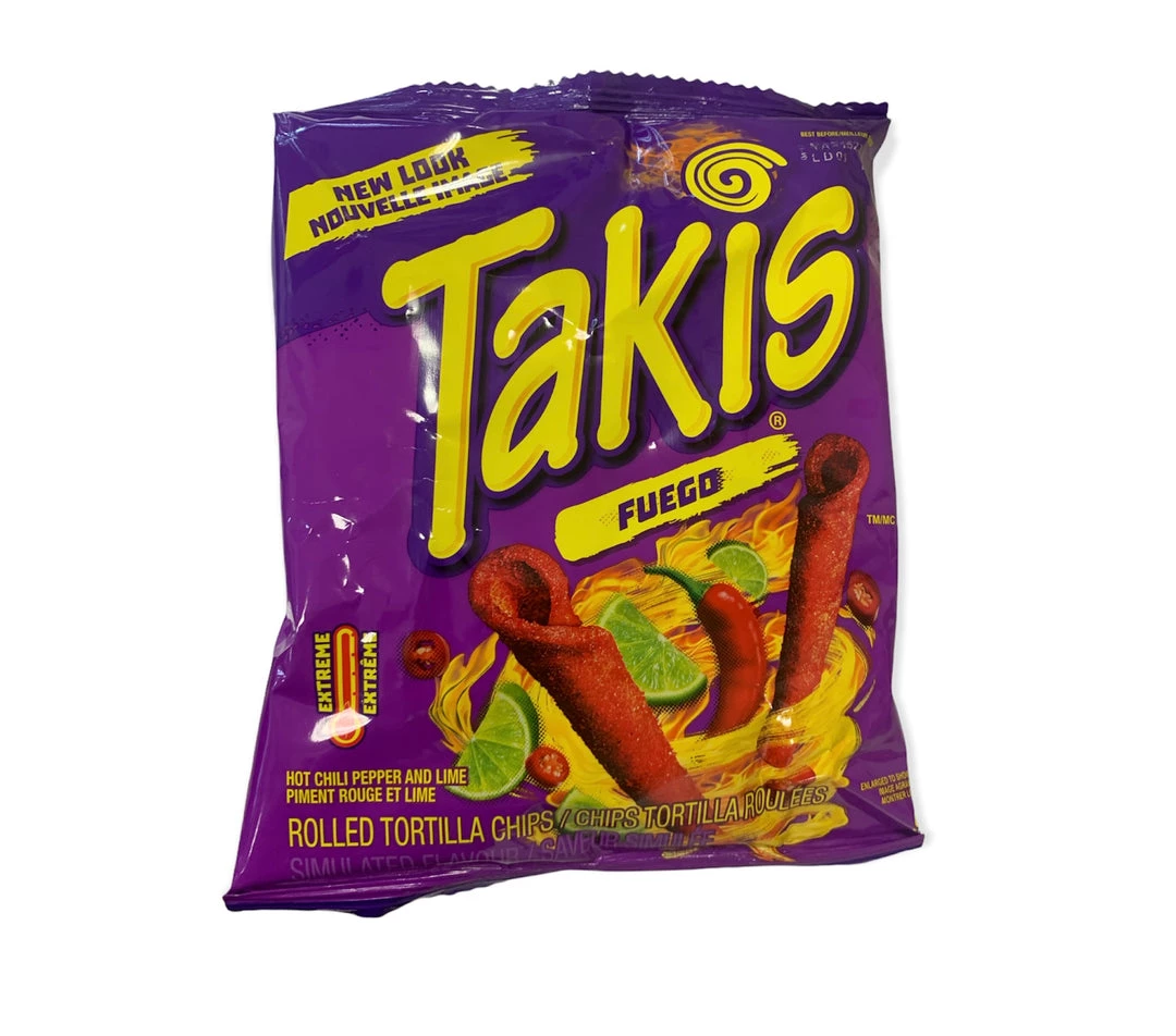 Takis Kettlez™ Fuego™ Hot Chili Pepper and Lime Flavour Potato Chips feature legendary Takis Fuego® flavour. These kettle-cooked chips are loaded with hot and tangy flavours for a tasty snack that’ll pack a punch.