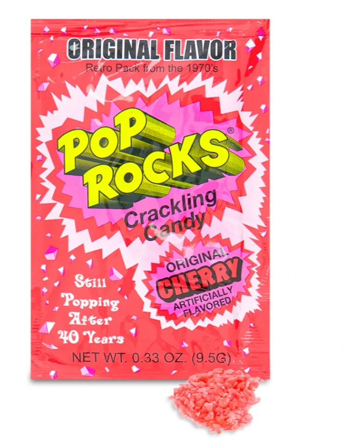 A Sweet Blast from the Past!ย Pop Rocks Candyย are a fruity candy explosion in your mouth. Great fun at parties and family events since 1975!