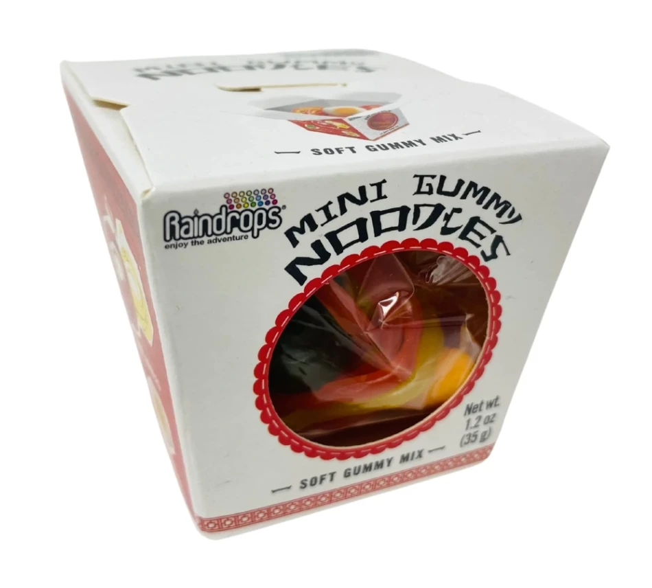 The Raindrops Gummy Noodles in Takeout Carton is filled with yummy gummy candy all packed in an authentic looking takeout noodle box.