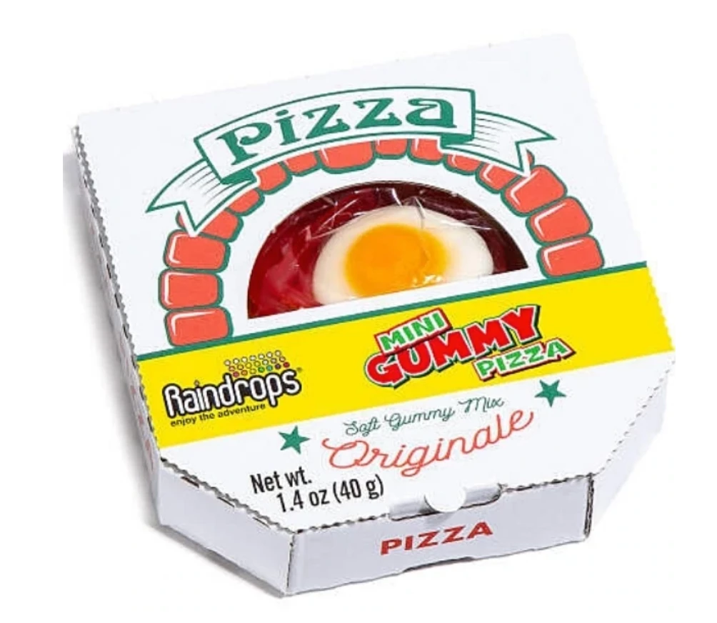 The Raindrops Mini Gummy Candy Pizza even comes in a miniature-sized pizza box!