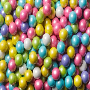 2lbs of delicate milk chocolate coated in a thin candy shell of shimmering blue, lavender, lime green, yellow, pink and white candy.