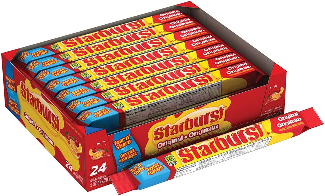 Starburst candies are packed with a variety of great tasting fruit flavors and a deliciously chewy texture, to be enjoyed anytime and anywhere. Pop one in your mouth and unleash the juiciness.