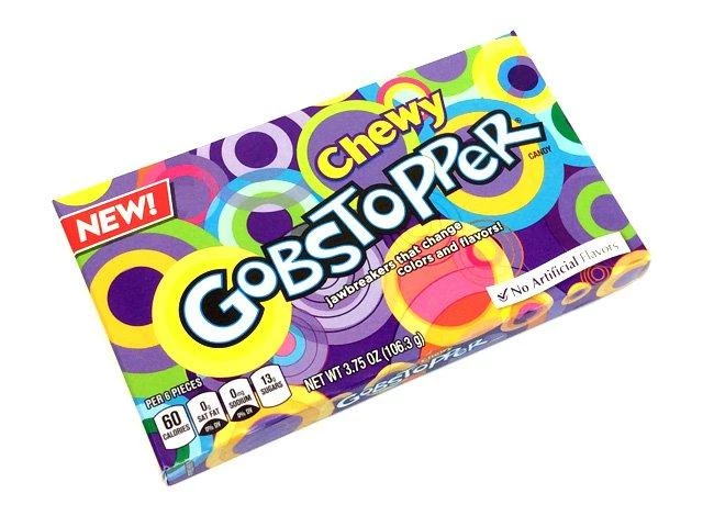 Willy Wonka chewy version of the Everlasting Gobstoppers Jawbreakers Candy in a king size Theater Pack.