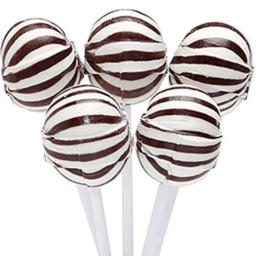 Bag contains 100 Black Sassy Suckers Striped Ball Lollipops.