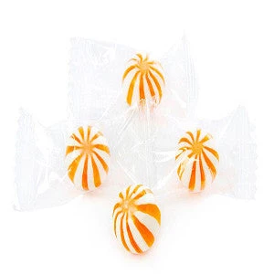 These itty bitty confections are big tasty beauties decorated with perfectly rendered orange and white stripes and a fabulous orange flavor. Individually wrapped for freshness, these fruity balls shine brightly in our sugary inventory. We recommend filling up a bowl and snacking on them one by one.