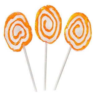 Bag contains 100 individually wrapped Petite Hypno Pops Orange & White Swirled Lollipops.