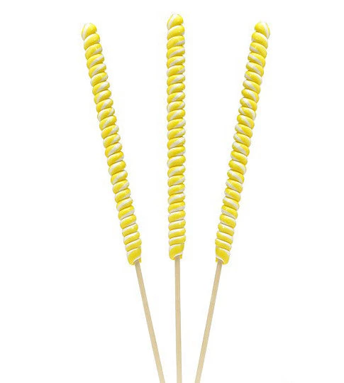 There are the dessert tables that consist of a few small bowls of mismatched candies, and then there are the dessert tables that inspire a sense of awe with their coordinated colors, varied shapes and tasty selections. These towering 10-inch twist pops are best suited to the latter, with cheerful spirals of mouthwatering banana-flavored yellow and white candy — a visual invitation that’s sure to attract admirers. Grab a handful, and let your creativity flow.