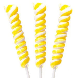 Tiny lollipop spirals of yellow and white hard candy featuring a delicious lemon flavor!