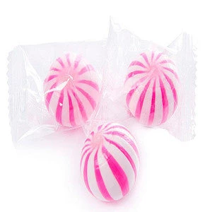 Expertly curving outward from swirly points on either side, lines that wrap across each individually wrapped pink Sassy Sphere make these delightful sweets look like striped balloons inflated to full capacity, such as the ones you see at the circus and county fair. Plucky and adorable, these vibrant pink and white confections taste just as good as they look. Bulbous and bright, each ball is full of fruity strawberry flavor that promises to perk up your taste buds and refresh your palate. Fill up a candy bowl with these jolly spheres for weddings, baby showers, holidays, or any occasion, and prepare to impress your guests!