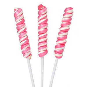 Tiny lollipop spirals of pastel pink and white hard candy featuring a delicious strawberry flavor!